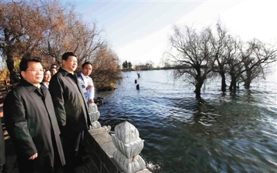 20日上午来到云南大理洱海边的湾桥镇古生村了解洱海生态保护情况,走上木栈道,湖水荡漾,苍山云绕,他同当地干部合影后说:“立此存照,过几年再来,希望水更干净清澈。”他叮嘱当地干部一定要改善好洱海水质。