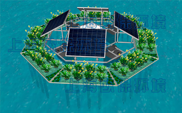 太阳能曝气浮岛主要由太阳能电池组件、曝气机及控制器、浮岛及填料等组成。